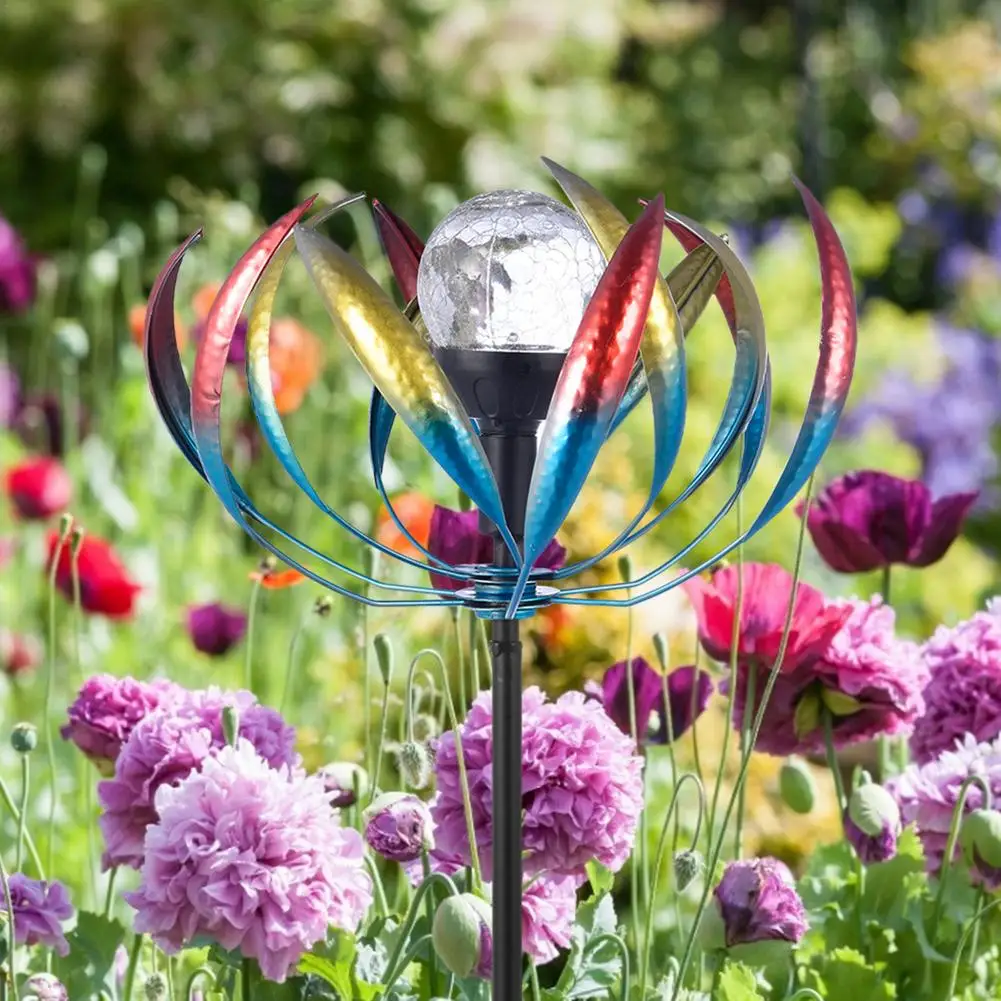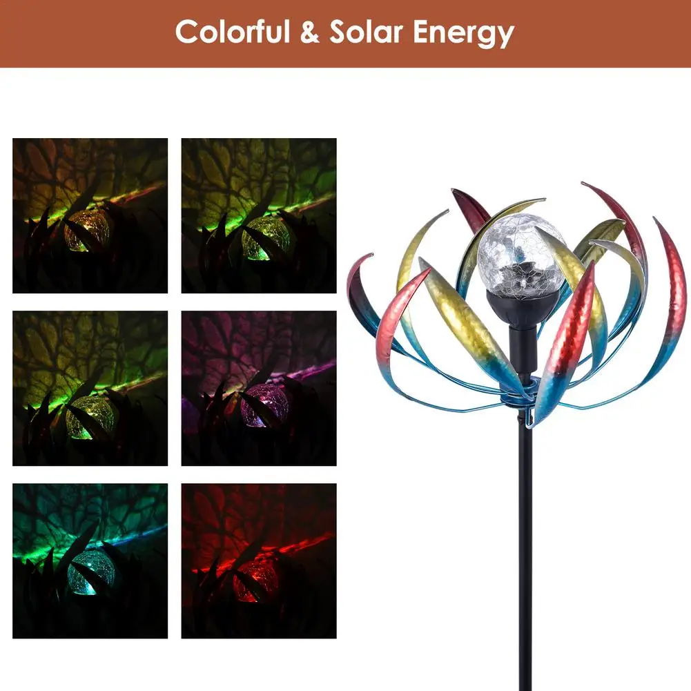 Special Offer Luar Ruangan Taman Surya Cahaya Logam Angin Spinner Besi Tempa Kincir Angin Dengan Multi-warna LED Cahaya Bola Halaman Dekorasi Rumput Discount (48%OFF) Today!
