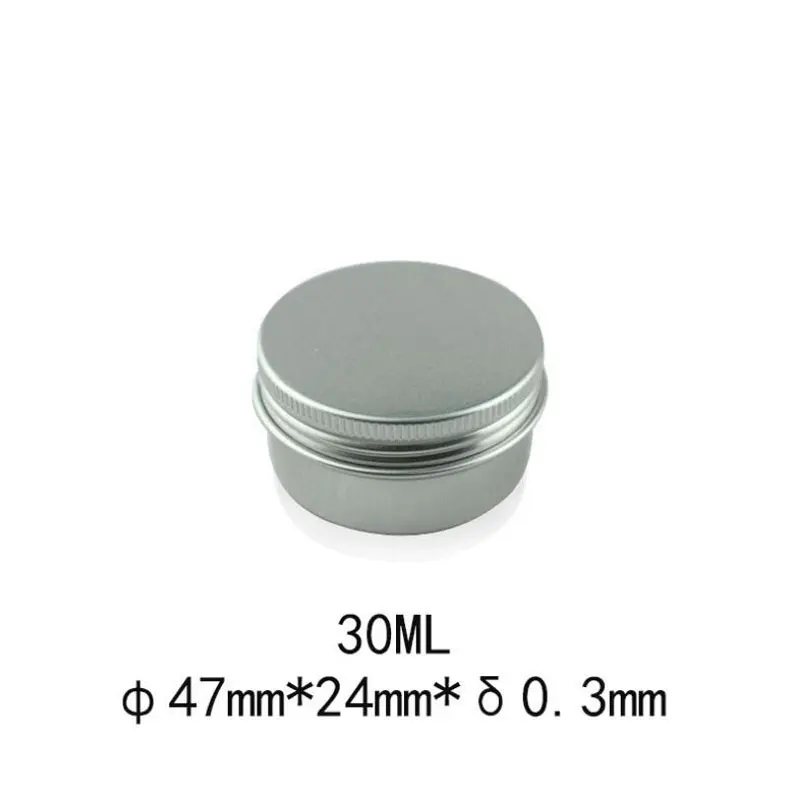 Product Name: 30 Ml Logam Aluminium Kosmetik Kosong Wadah Lilin Cream Jar Botol Ulir Sekrup Tutup Kemasan Kotak Kaleng Isi Ulang 50 Buah