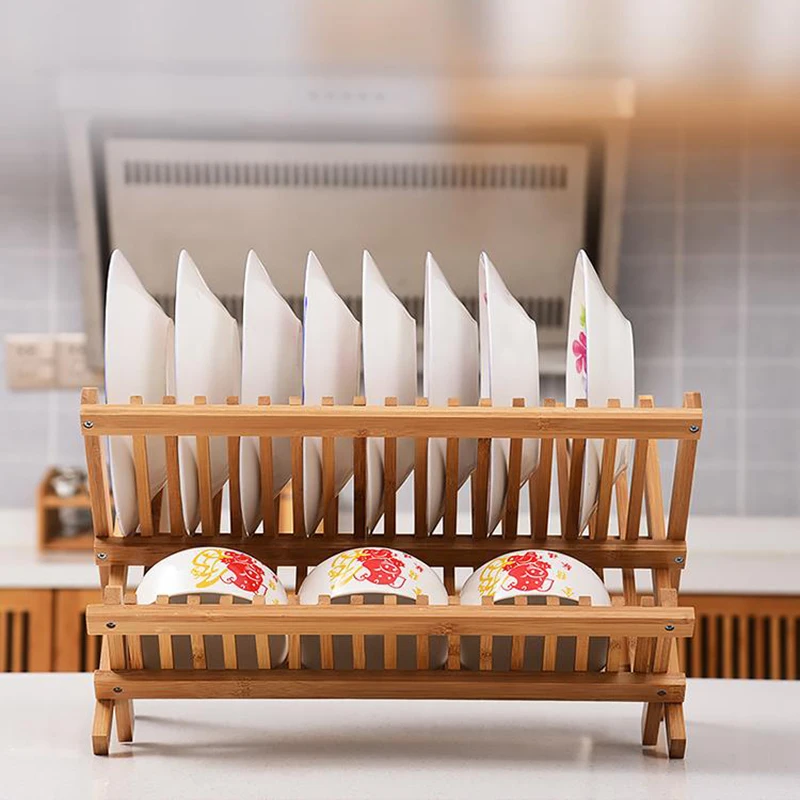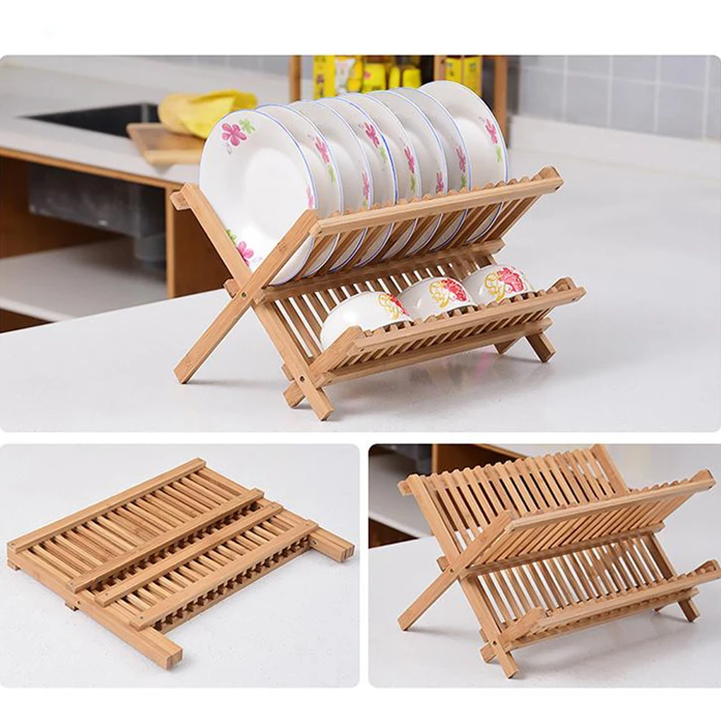 Special Offer 2 Tingkatan Rak Pengering Piring Kayu Bambu Lipat Piring Dapur Mangkuk Penyimpan Peralatan Makan Organizer Pengering Piring Dapat Dilipat Discount (28%OFF) Today!