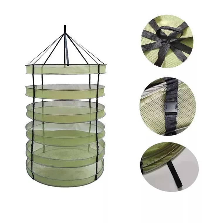 Product Name: 3 Kaki/90Cm Diameter 4/6 Lapisan Ramuan Rak Pengeringan Net Baja Cincin Foldable Menggantung Pengering Rak Dilipat Mesh Hidroponik