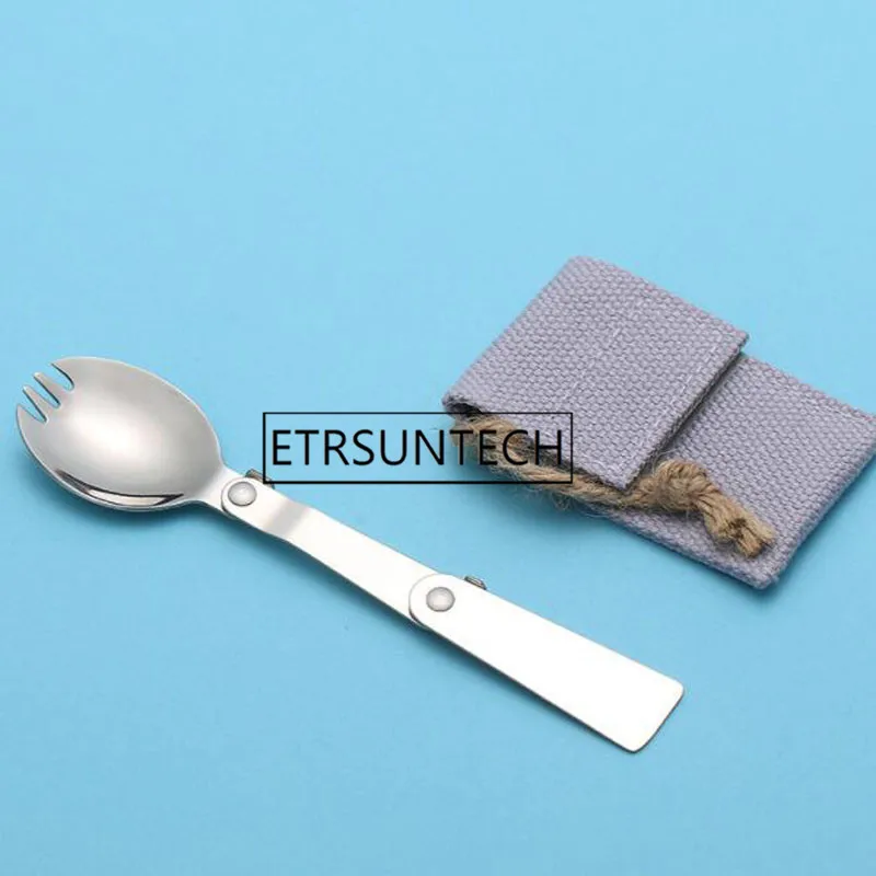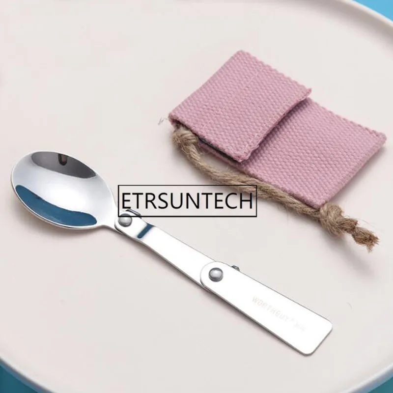 Product Name: 100 Set Luar Ruangan Lipat Perjalanan Berkemah Perkakas Stainless Saku Sendok Garpu Kecil Lipat Sendok Garpu Camping Piknik