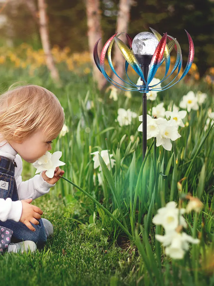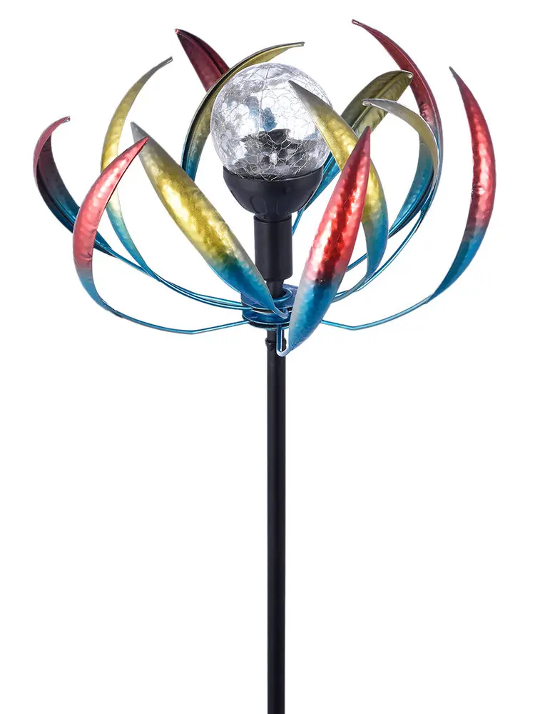 Product Name: Surya LED Begonia Pemintal Angin Logam Kincir Angin Tiang Taman Berkebun Kincir Angin Dekorasi Patung Multi-warna Lampu LED