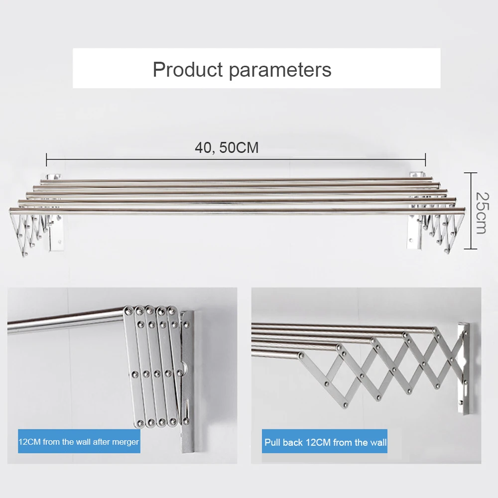 Product Name: W-Jenis Ruang Saver Pakaian Rak Stainless Steel Untuk Dinding Dilipat Laundry Lipat Pakaian Pengeringan Rak Gantungan Baju