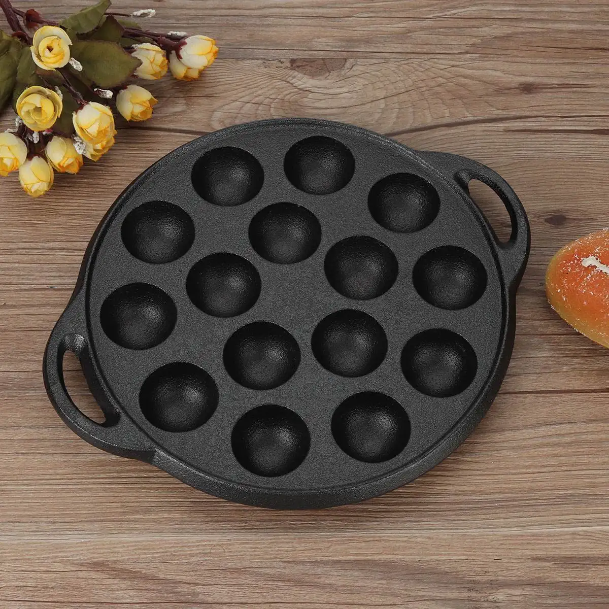 Product Name: Panci Kue Poffertjes 15 Lubang Panci Pangsit Telur Sarapan Poffertjes Panci Kue 28CM Pembuat Wafel Dapur