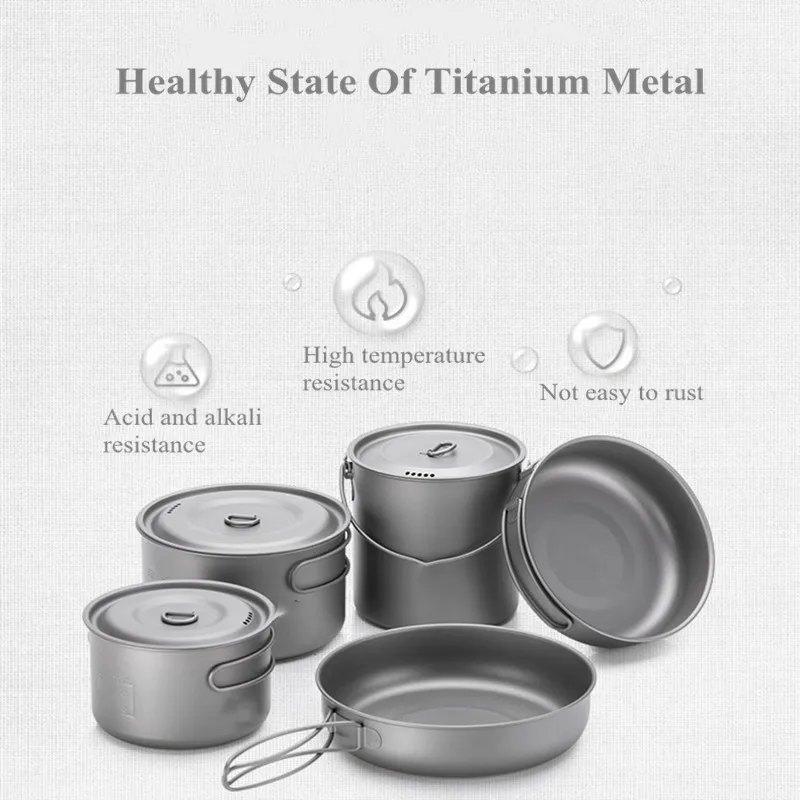 Product Name: Peralatan Makan Luar Ruangan Titanium Pot Camp Berkemah Wajan Goreng Lapangan Portabel Pot Peralatan Masak Peralatan Dapur Travel Hik Piknik Masak Alat Makan