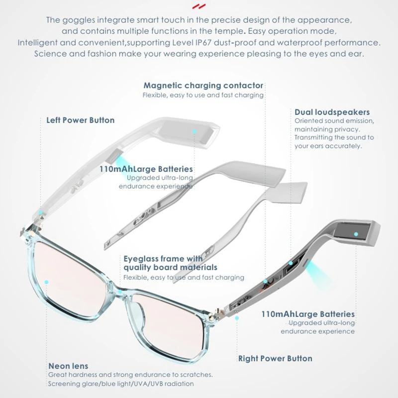 Product Name: H2-C Kacamata Bluetooth Pintar Kacamata Miopia Olahraga Panggilan Mendengarkan Musik AI