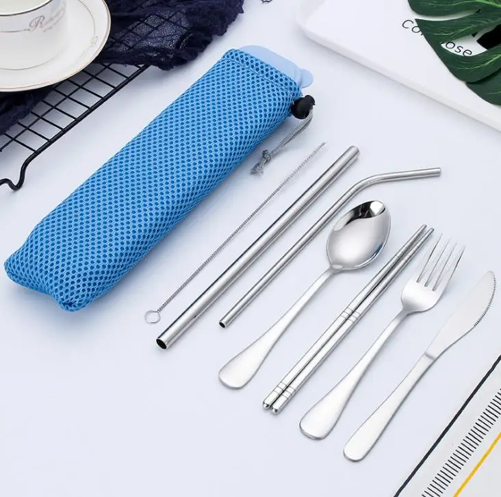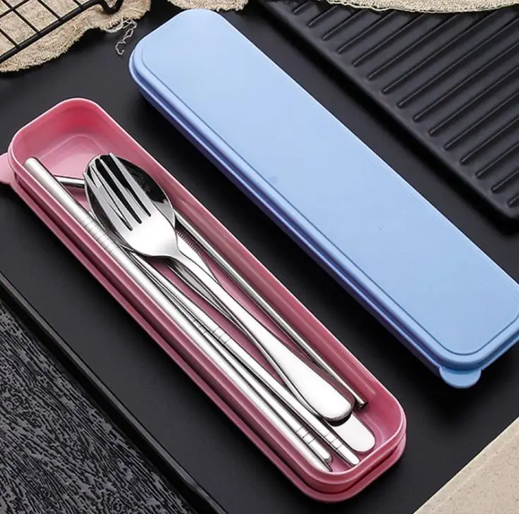Special Offer Set Sendok Garpu Baja Tahan Karat Set Sendok Garpu Portabel Perlengkapan Makan Piknik Travel Sedotan Logam Dengan Kotak Dan Tas Peralatan Dapur SN Discount (9%OFF) Today!